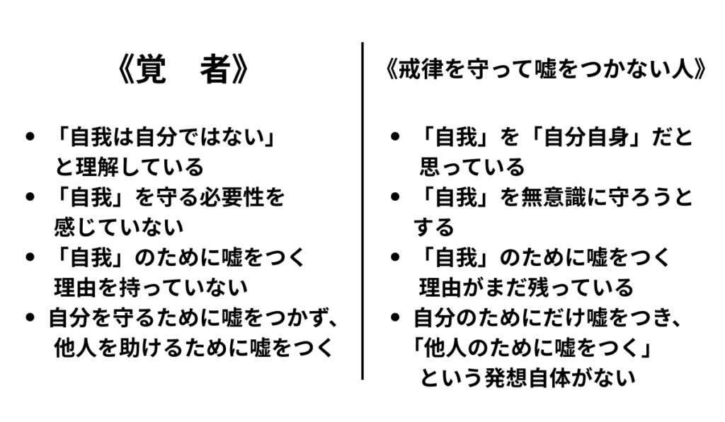 このため、覚者は「結果的に」嘘をつかなくなる傾向があります。